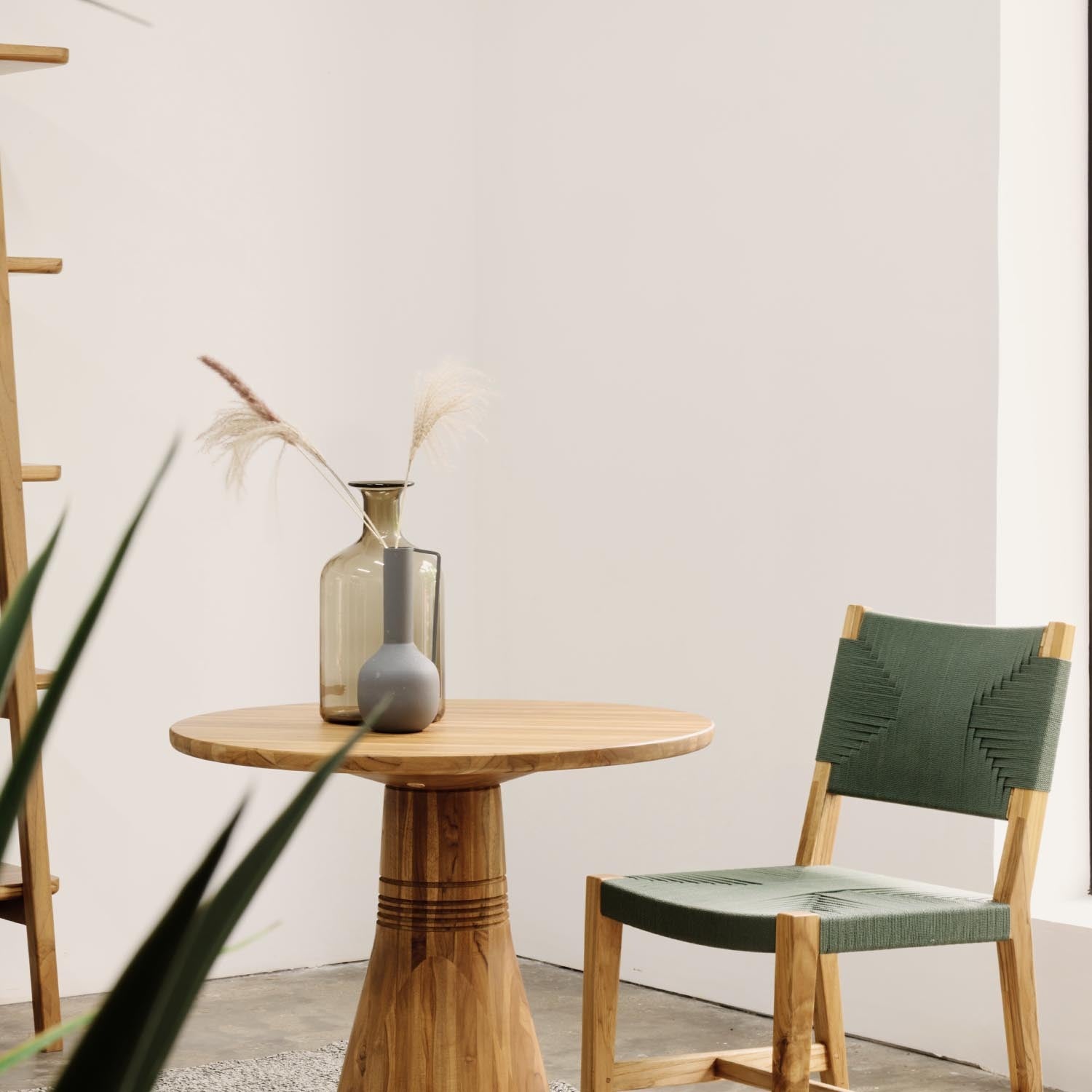 The minimal design of the Monimbo compliments a wide range of styles and interiors and has solidified itself as our go-to dining chair. Each piece is handmade from reforested teak wood and handwoven using durable polyester cord inspired by Japandi esthetics and Danish Cord designs.