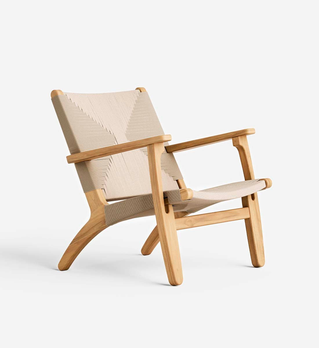 A re-imagined Mid-Century Modern classic. The Masaya Armchair uses woven rope patterns to bring rich textures to modern interiors. Designed to elevate Japandi, Scandi and Modern interiors. Made using solid FSC®-Certified teak wood frame and woven using durable polyester cord.
