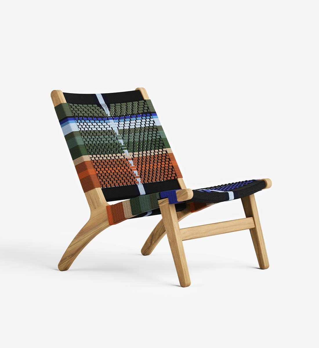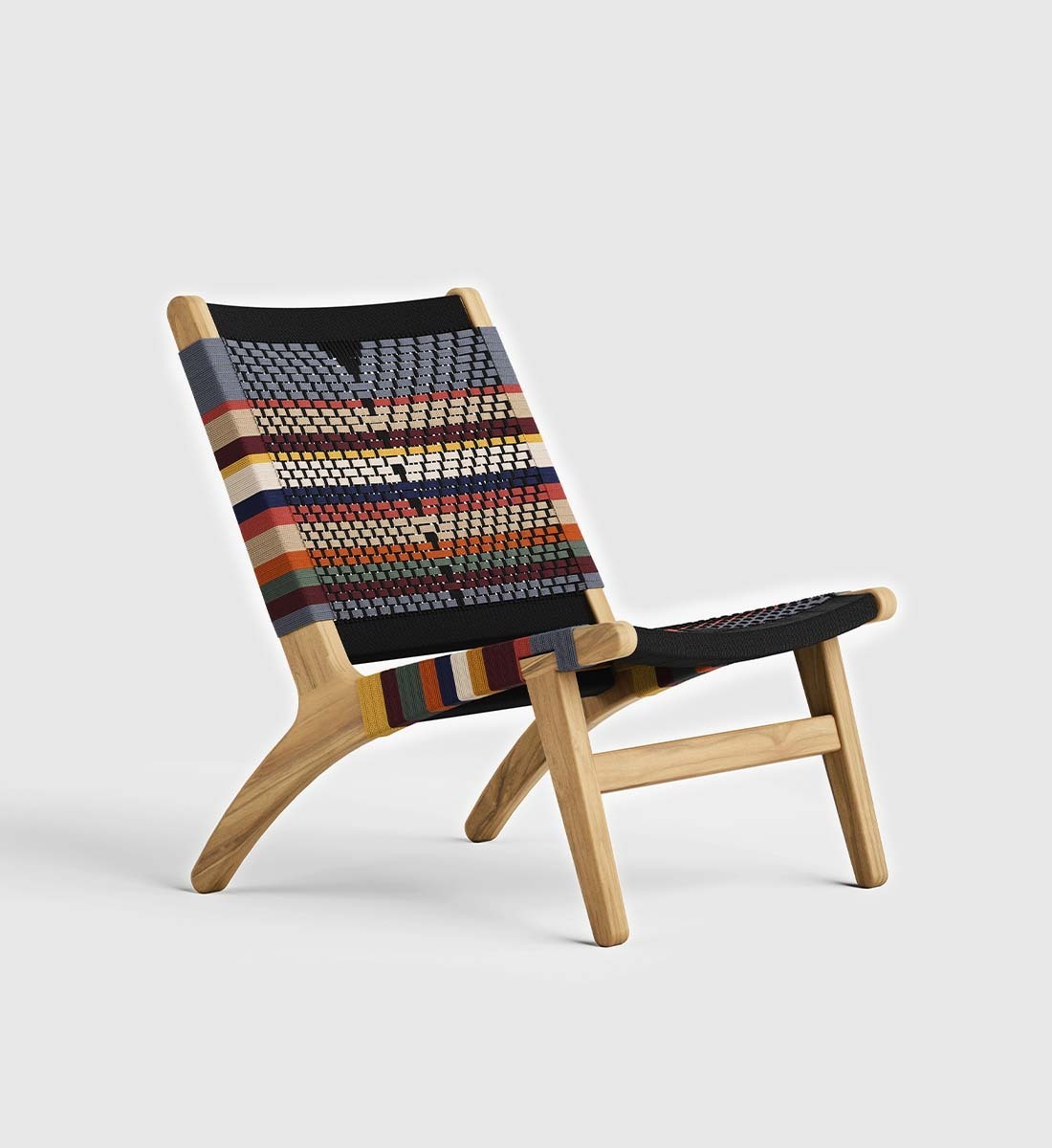The Masaya Lounge Chair features a woven rope back and seat, inspired by Mid-Century Danish Cord and Japandi designs. Each piece is handmade from solid FSC® Certified teak wood and woven by hand using durable homespun polyester cord.