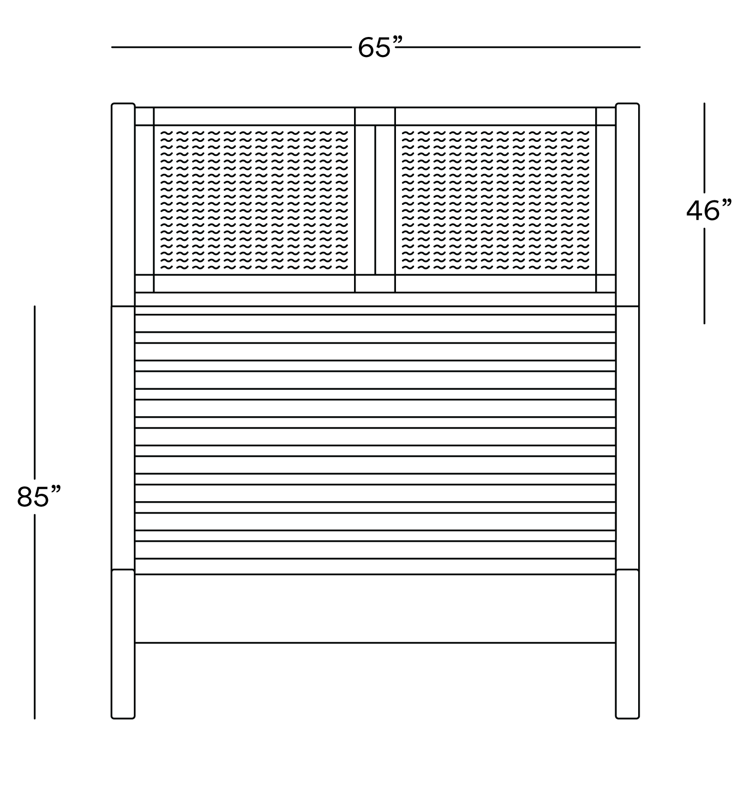 Queen: W: 64" D: 83.5" H: 46"