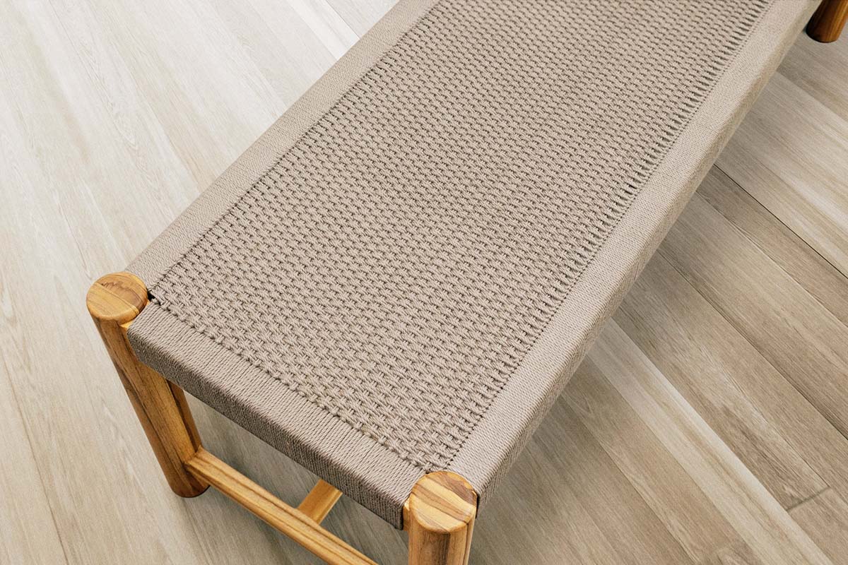 A classic Mid-Century modern design with a twist. The Masaya Armchair uses woven rope patterns to bring rich textures to modern interiors. Popular in Japandi, Scandi and farmhouse interiors. The frame is made from solid FSC®-Certified teak wood frame and woven using matte polyester cord that is more durable and easier to wash than traditional Danish Cord