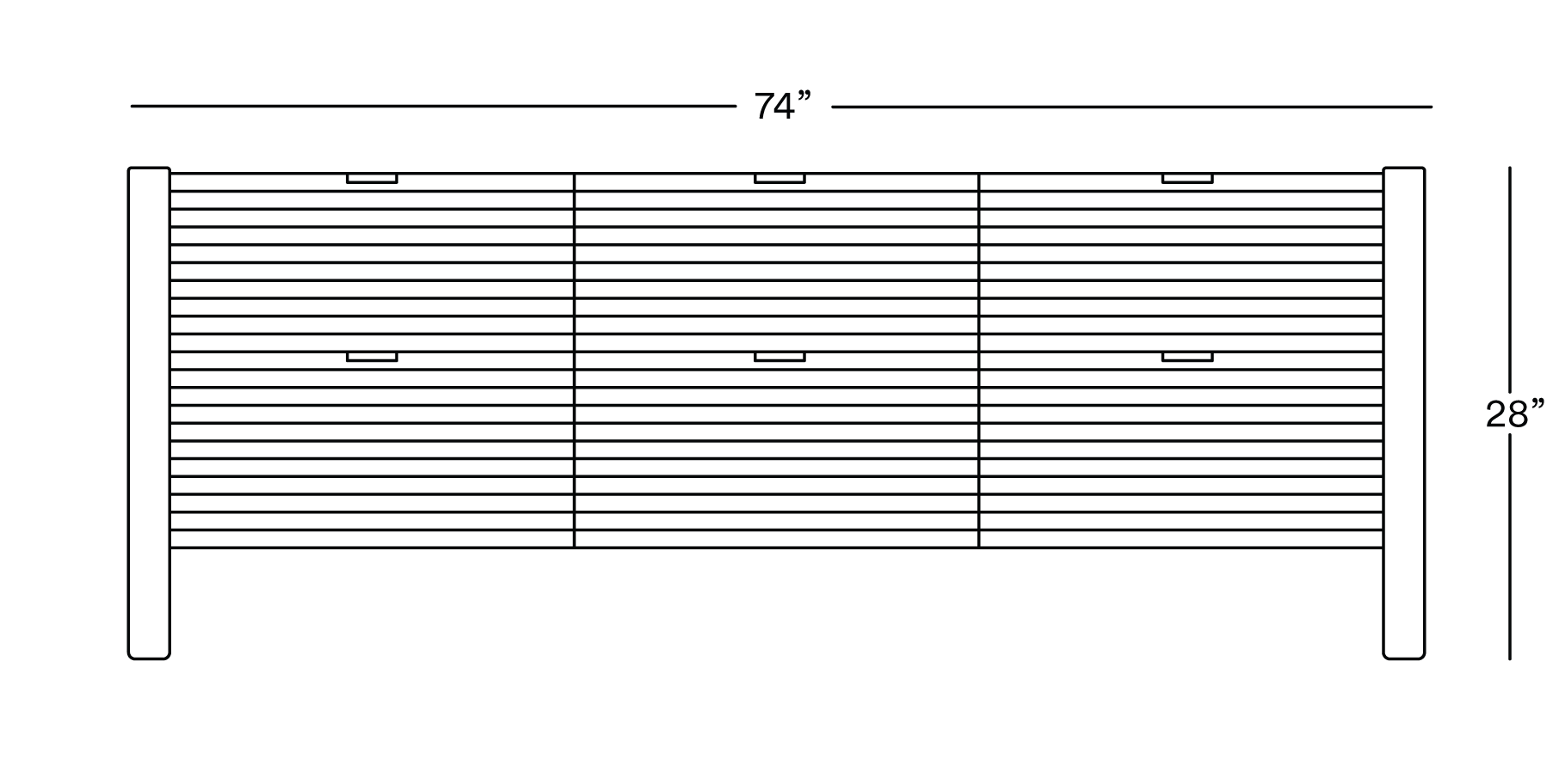 W: 74" D: 19.5" H: 28"